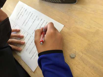 文節や単語について、学校日本語指導員のサポートを受けて学習しています。