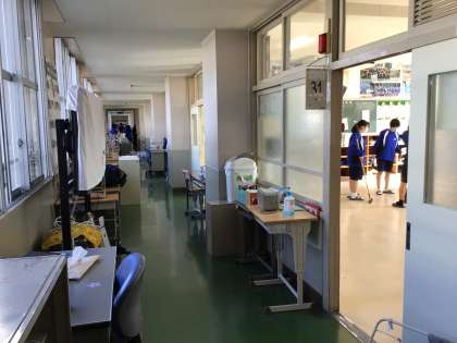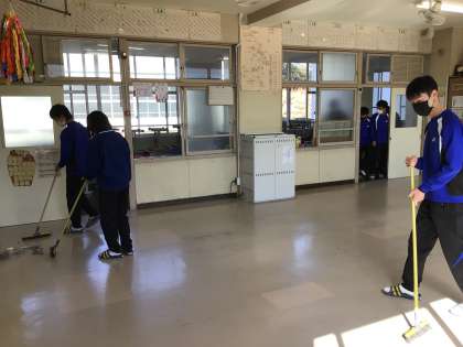 3先生が、愛校活動として教室のワックスがけやグランドの清掃、部室の片付けなどを行っています。天気が良くてよかったです。ありがとうございます。