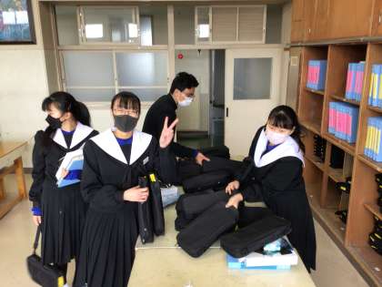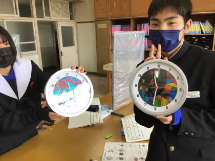 美術の卒業記念作品の時計が完成しました。絵の具やデザイン道具を持ち帰ります。