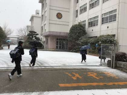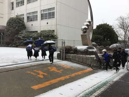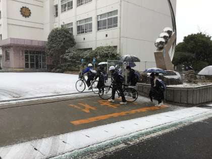 今朝は、雪の中の登校になりました。安全に気をつけて等下校してください。