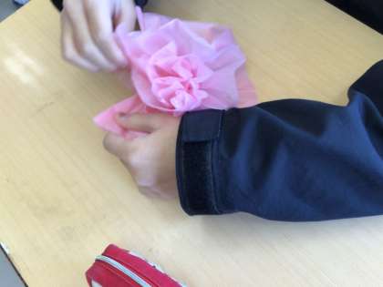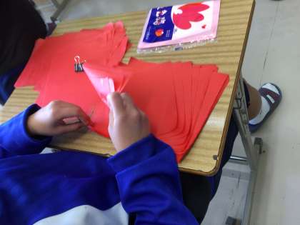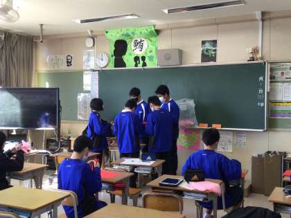 卒業までカウントダウンです。1年生は飾り付けの準備をしています。