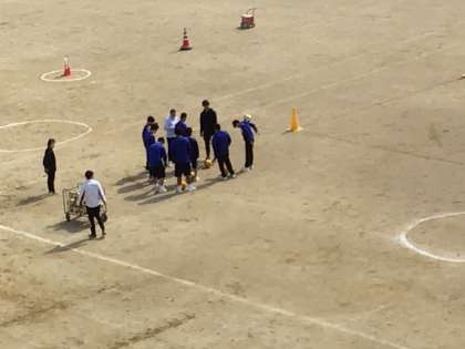 今日は暖かくて気持ちがいいです。サッカーの授業をしています。