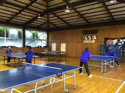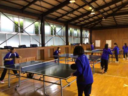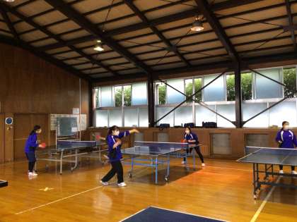卓球部です。基礎練習を中心に行っています。
