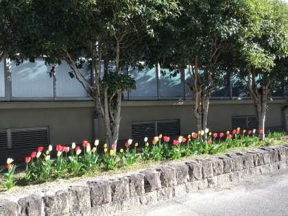 校内の桜の花や花壇のチューリップが、入学式を楽しみにしているかのように元気に咲いています。私たち教職員一同、7日の入学式を楽しみにしております。