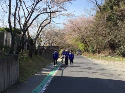 入学式の準備に新3年生が登校しています。笑顔で登校しています。