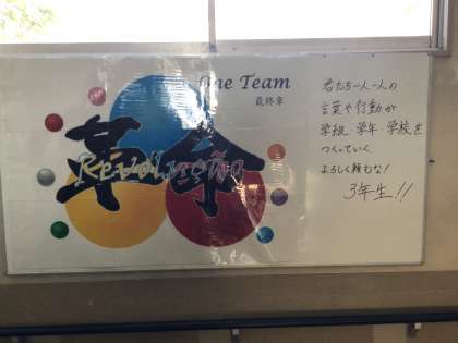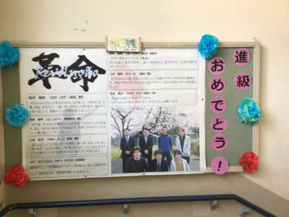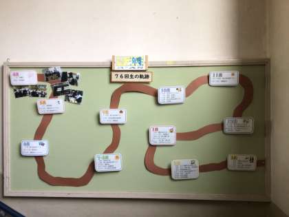 3年生の先生紹介と学年目標、行事予定が掲示しています。