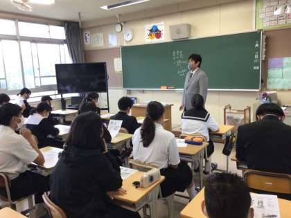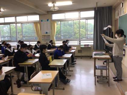 3年生は、進路だよりを読みながら、奨学金についての説明をしています。