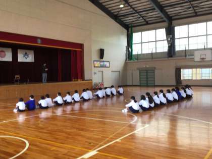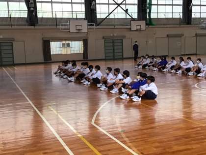 みんなが大好きな体育の授業です。新しい仲間との活動を楽しみにしています。いい姿勢で話を聞くことができています。