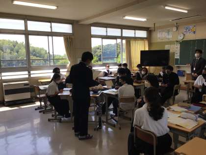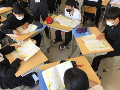 国語の授業です。詩の学習でグループで発表しています。
