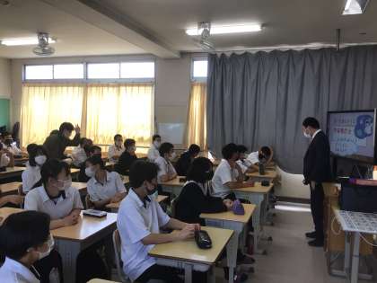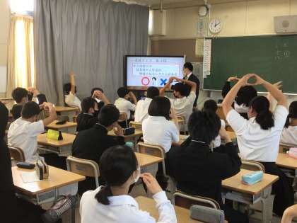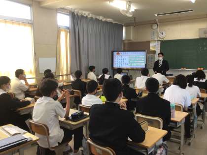 2年生で進路学習を行なっています。今の生活が高校進学や将来の夢につながっていることを学び、進路クイズに取り組みました。
