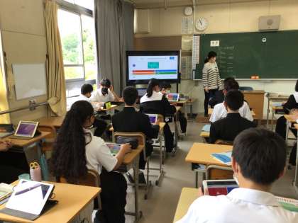 電子黒板で視覚化したり、タブレットを使って学習したりしています。
