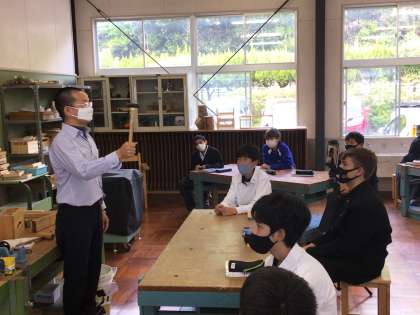 技術科の授業は、初めて木工室に入りました。