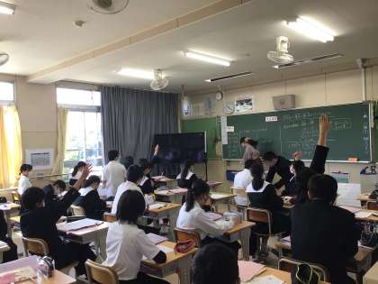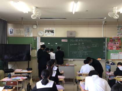 数学の授業では、黒板に自分の考え方を書いています。