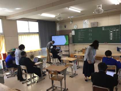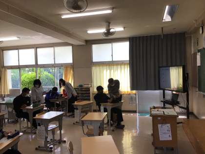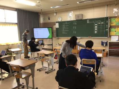 家庭科の学習では、タブレットを使って調べてまとめます。