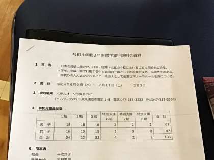学校公開日の一つとして、修学旅行説明会を行っています。