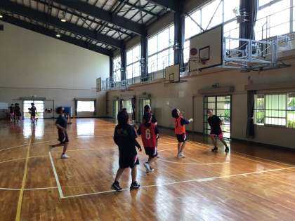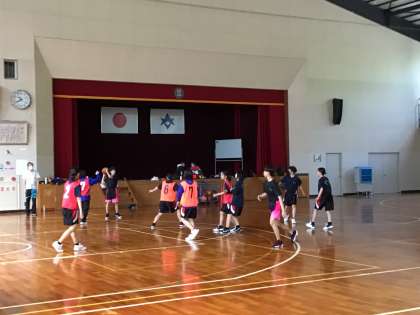 バスケットボール部は、男女とも試合形式で練習しています。