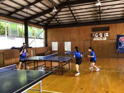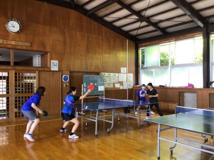 卓球部は、ダブルスの練習です。