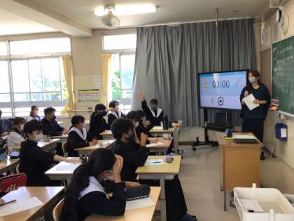 道徳の授業です。学年部の先生が授業を交代で行っています。