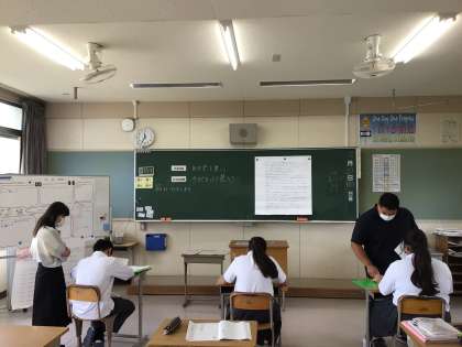 国語の授業です。少人数で日本語を強化しながら学習言語を覚えます。