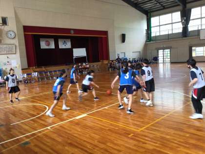 女子バスケットボール部は、練習試合をしています。練習の成果が発揮されています。地域指導者の方が、毎週来てくださり技術的な指導だけでなく、メンタル面も支えてくださっています。