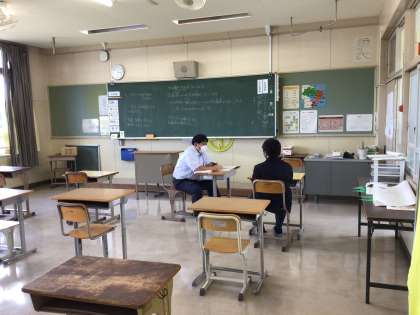 今日から教育相談期間として、学級担任の先生と教育相談を行っています。学習のこと、テスト勉強のこと、学校生活のことなどについて話をしています。