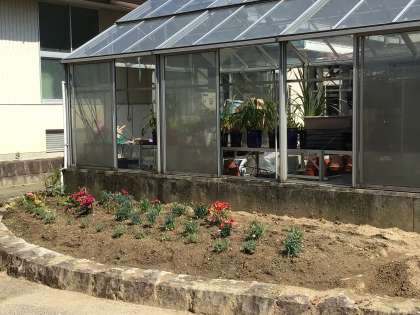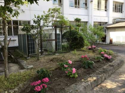 公務手さんや校内整備員さんが、校内の花壇や樹木の整備をしてくださっています。いつも美しい環境が保たれています。
