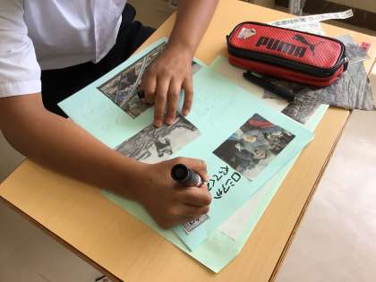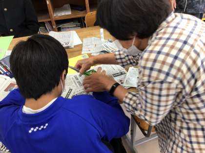 社会科で、ウクライナで起こっている状況などについて新聞記事を通して学習しています。ことばの教室の生徒も交流しています。