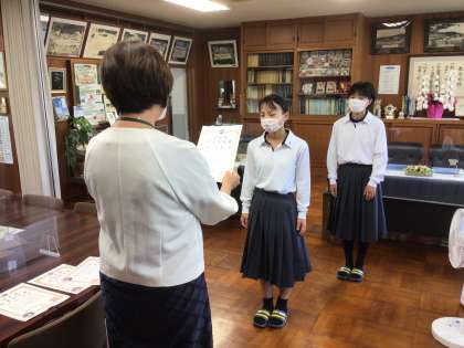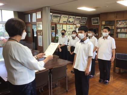 昨日ホームページでも紹介しました、地域の環境美化に貢献した生徒たちに校長特別賞の表彰を行いました。