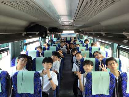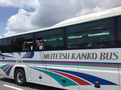 バス内で食事中です。