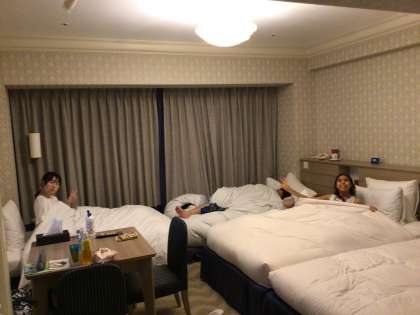 シャワーを浴びて就寝準備です。部屋からの眺めも最高です。1日目が終わりますが、全員とても元気です。