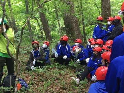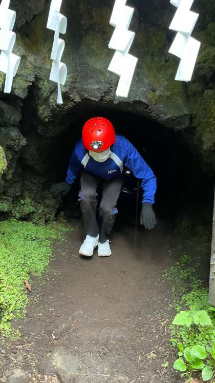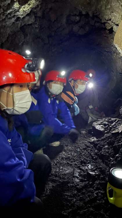 河口湖洞窟体験の様子です。
