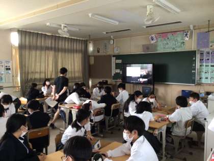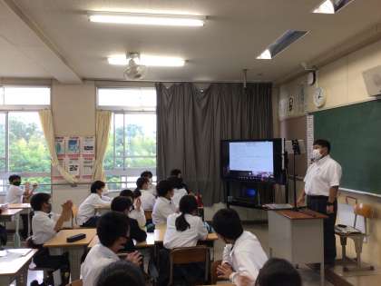 プレゼンを見ながら、外国人についてやコミュニケーションについてクイズ形式やグループトークで考えています。