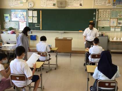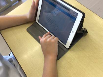 ことばの教室では、在籍校への復帰に向けてタブレットを使っての健康観察をしています。