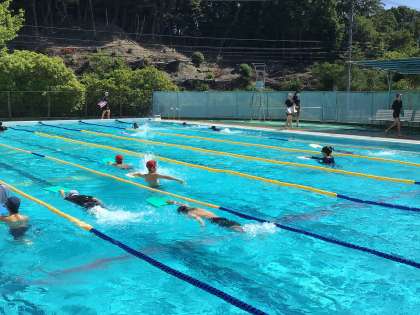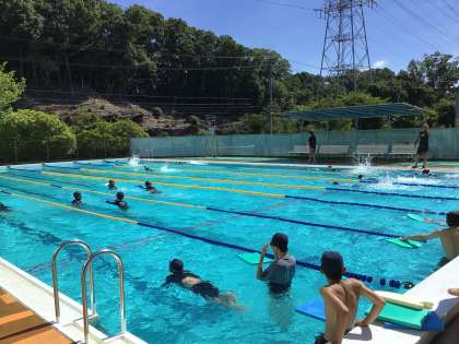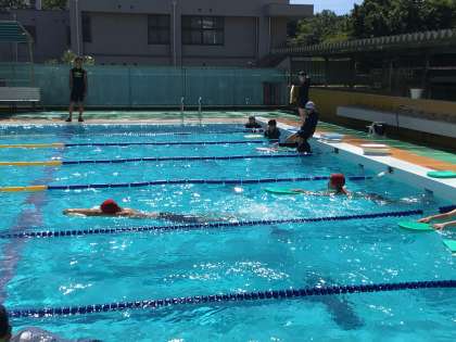 体育は、水泳の授業です。水が冷たく感じられて気持ちよさそうです。
