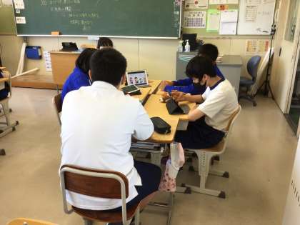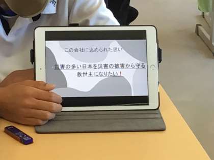 社会科では発表に向けて作成したプレゼンテーションを用いて、発表練習をしています。