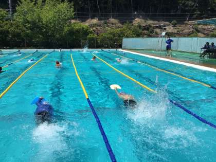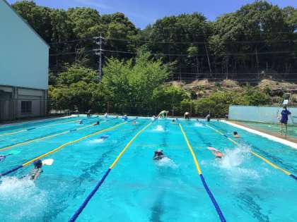 水泳の授業です。基礎的なことから指導しています。