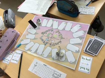 英語ではALTの先生が準備したカードゲームで楽しく英語を学んでいます。