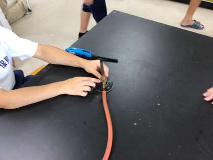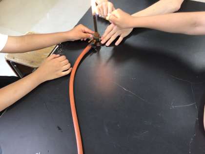 理科の実験です。ガスバーナーの使い方を学習しています。