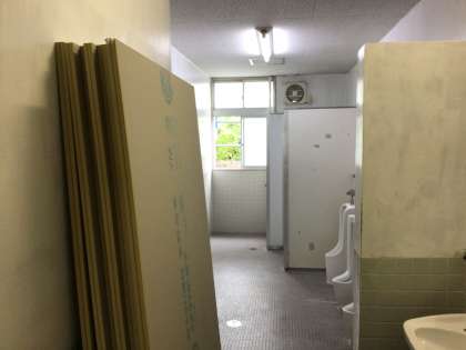 古いトイレの回収工事が始まりました。