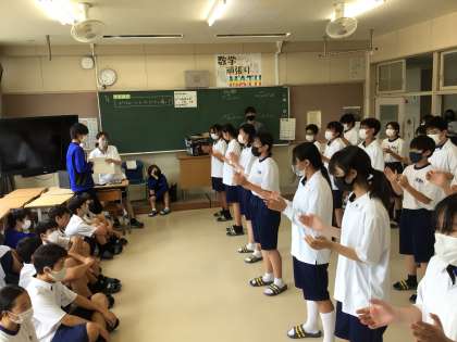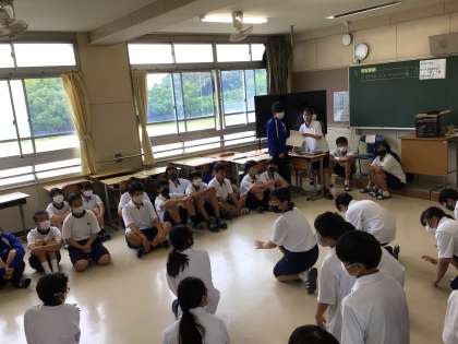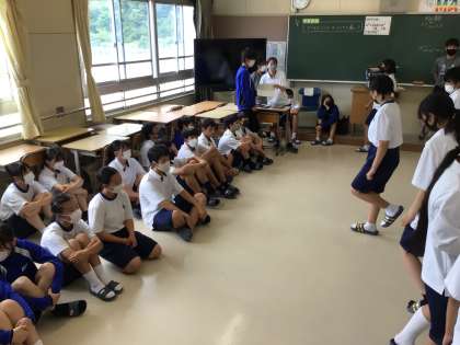 放課の時間を使って1年生と3年生が見せ合っています。