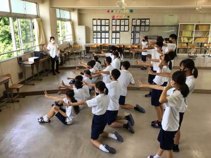 音楽では、ボディパーカッションの仕上げです。今日発表会です。