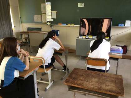 戦時中の文章を理解できるように、当時の日本の様子を映像資料を用いて説明しています。