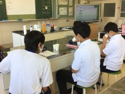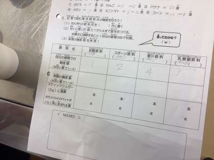 家庭科では清涼飲料水を試飲して、糖度の予想を立てています。