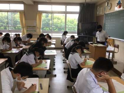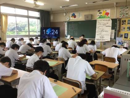 3年生は本日、学習診断テストに取り組んでいます。みんな真剣に最後まで粘り強く問題を解いています。