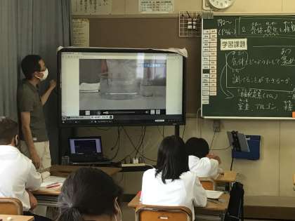 理科では気体の性質について学習しています。動画で気体の集め方を確認しています。