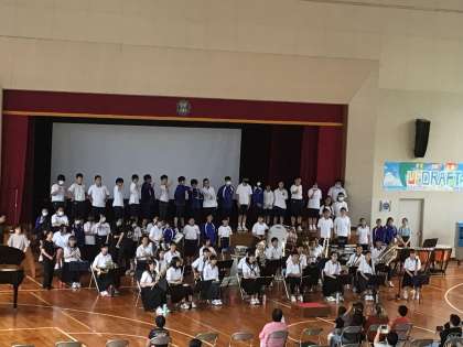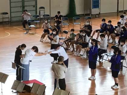 閉会行事で校長先生から各部の部長に校長特別賞が授与されました。その後、全員で記念撮影を行いました。