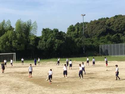 今日から夏休みです。新チームでの練習が始まりました。熱中症対策として、早朝からの練習になっています。