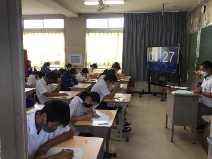 学年でドリルコンテストに取り組んでいます。最後まで粘り強く問題を解いています。