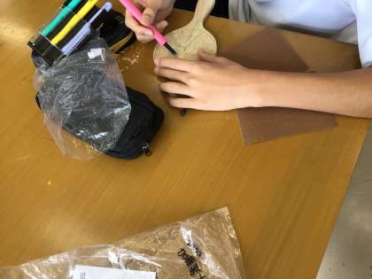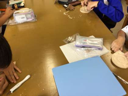 美術の授業では、彫刻刀で作品を作っています。
