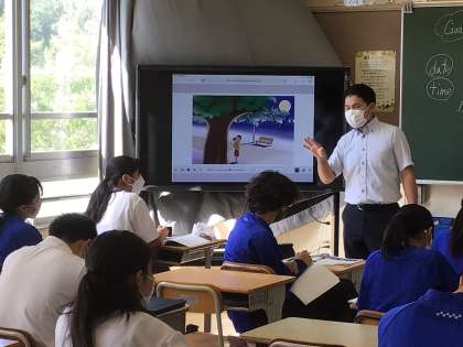 英語では「場面の変化をとらえて音読しよう」という学習課題でさまざまな表現を学習しています。